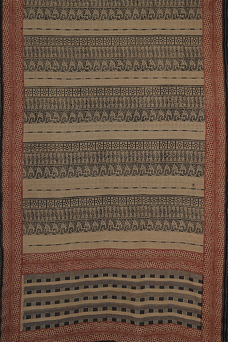 Hand Woven Cotton x Silk With Pure Jari Border Block Printed With Natural Dye Saree