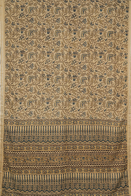 Natural Dye Hand-Painted Desi Tussar Silk Kalamkari Sari